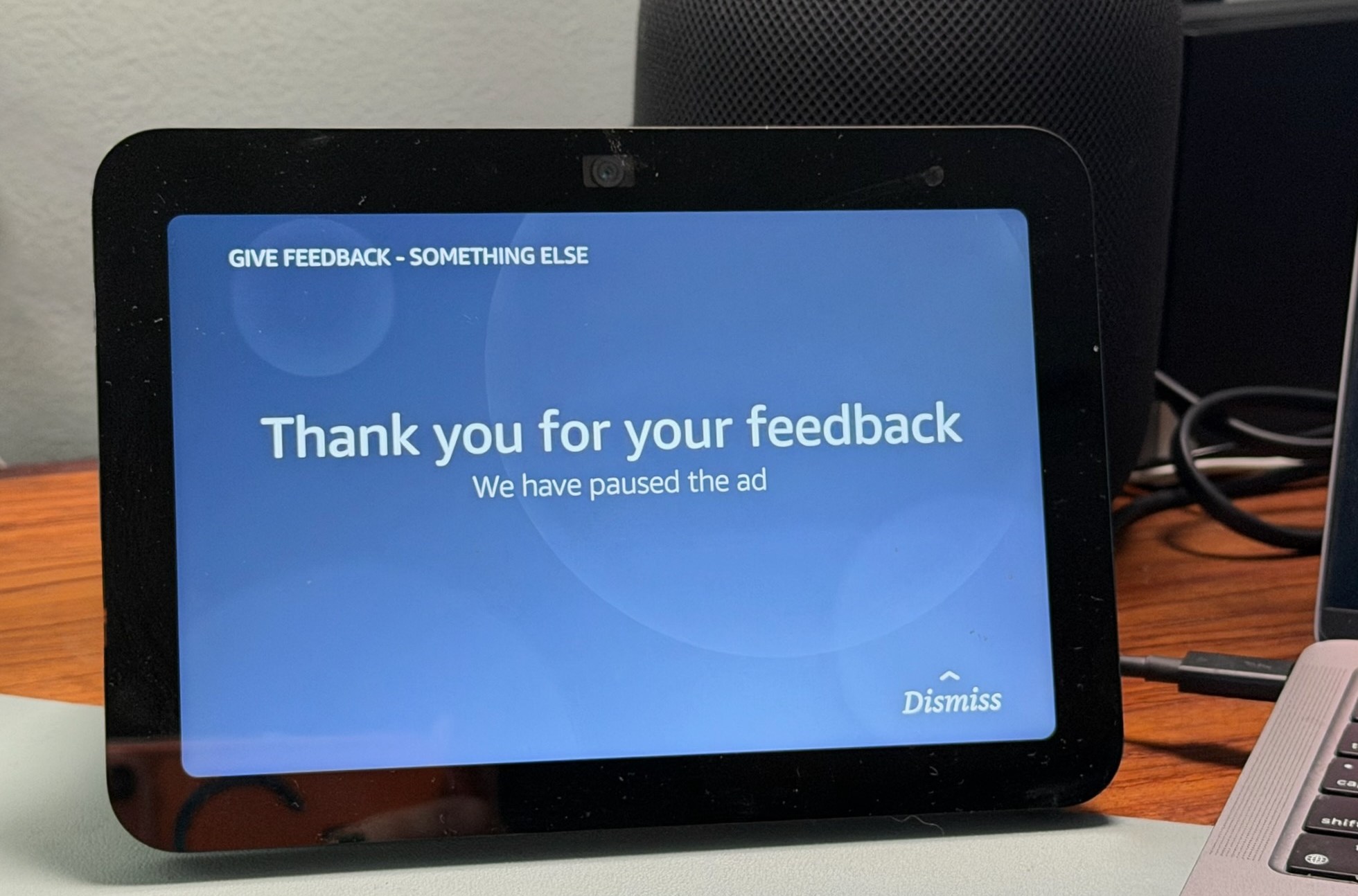 I tried this, selected “irrelevant ad” from the list of suggested feedback, and got a message saying it had “paused the ad.” But that didn’t stop another ad from appearing. Echo Show users have been trying all sorts of workarounds — from switching to Canadian English (the ads aren’t in Canada — yet) to enabling Kids Mode. But ultimately, if you have to hobble a device to make it usable, why use it at all?