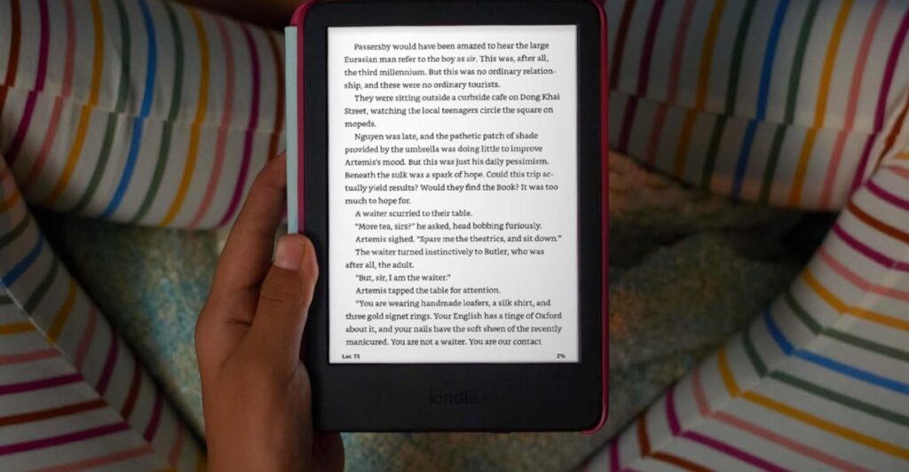 The Kindle Paperwhite Kids has an IPX8 waterproof design, which means the e-reader can be submerged completely underwater without getting damaged. It’s the better choice for reading during bath time or at the beach. It also has an adjustable warm light, which can tint the screen amber to make it more comfortable to read at night. These hardware tweaks make the Kindle Paperwhite Kids a better choice for more voracious readers whose hands are big enough to handle the larger device comfortably.