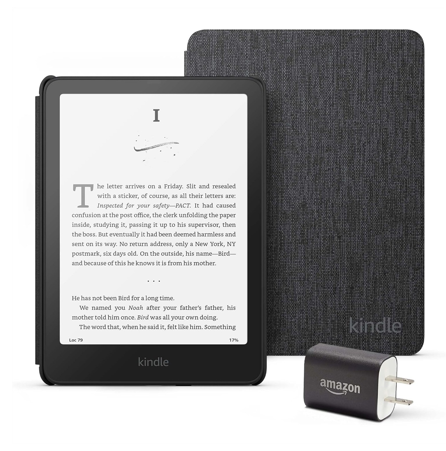 Amazon’s step-up Kindle Paperwhite bundle includes a Kindle Paperwhite Signature Edition, a wireless charging dock, and your choice of either a fabric or plant-based cover.