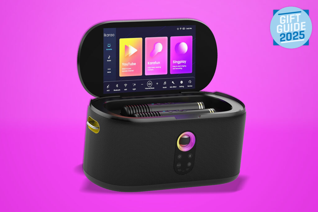 The Shell S1 is karaoke without compromise. Its 10.1in HD touchscreen makes choosing songs and following lyrics simple, while dual wireless microphones ensure everyone gets a turn on the mic. Built-in speakers deliver loud, clear sound, and the rechargeable battery means the party isn’t tied to a plug socket. Connectivity covers Bluetooth, AUX, USB, and HDMI, so it works with phones, TVs, or tablets. Add colourful LED light effects and robust construction, and you’ve got an all-in-one system that transforms bedrooms, gardens, or living rooms into instant stages. For family fun or party-starting energy – as long as you’re in tune.