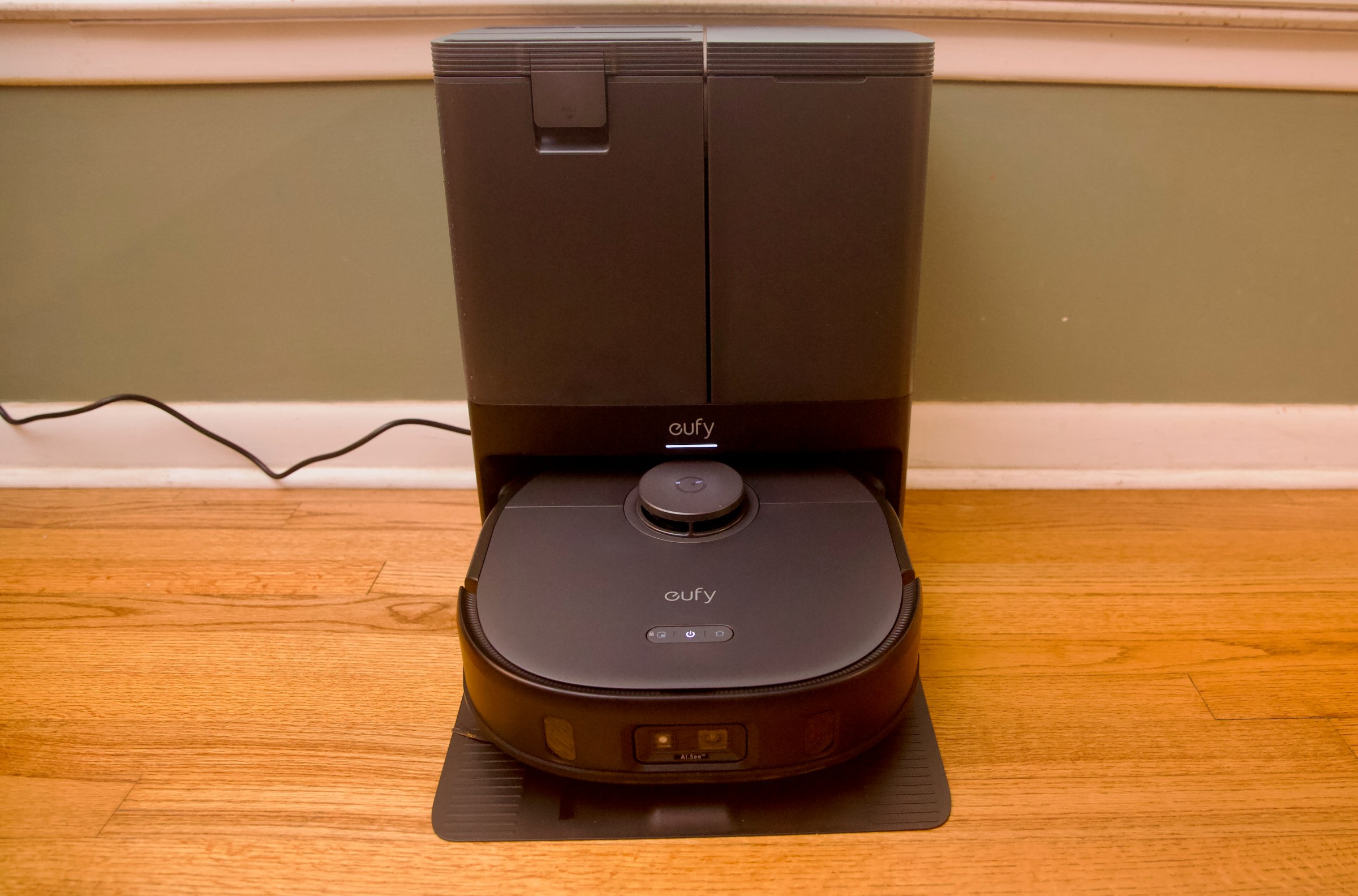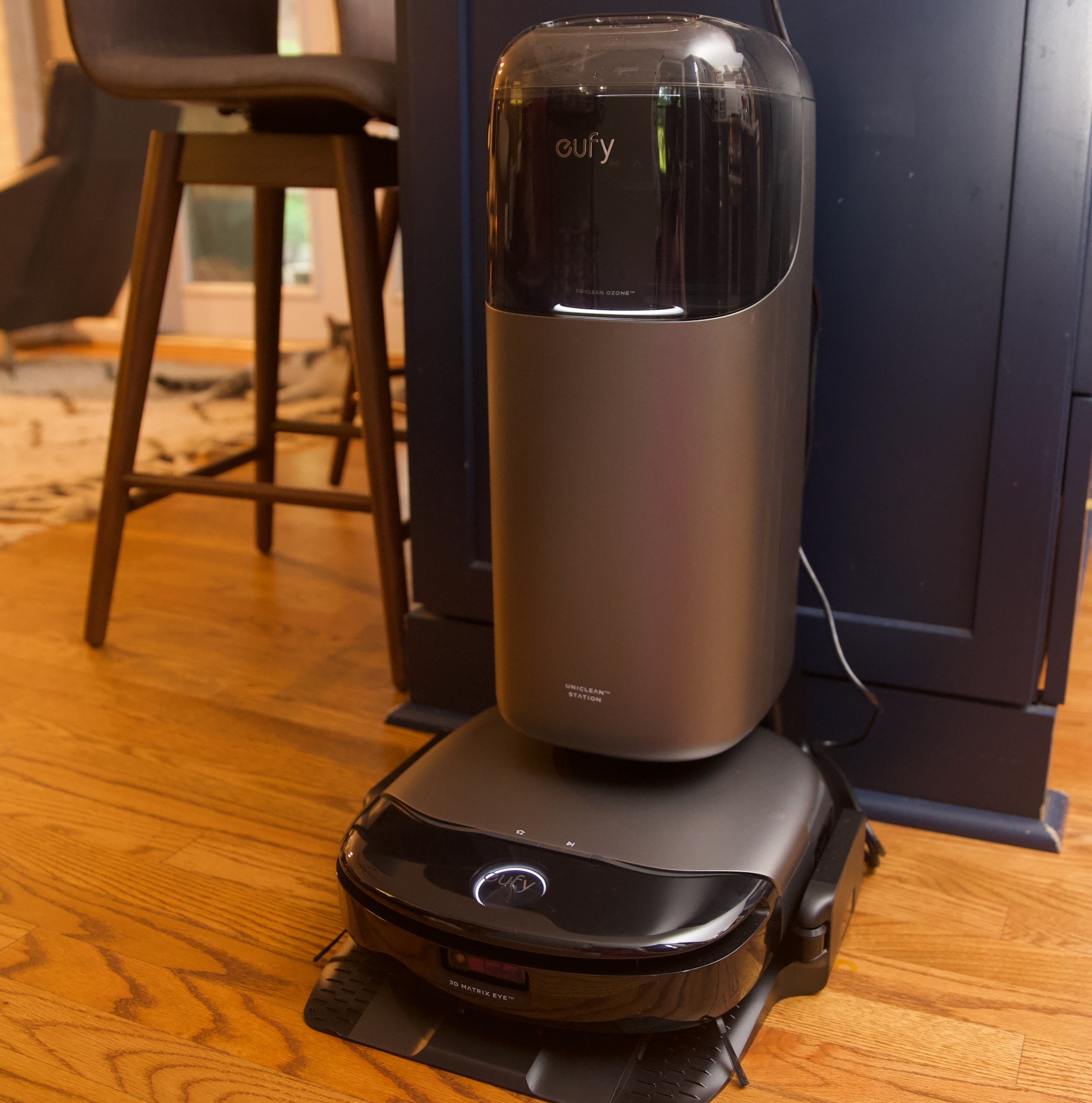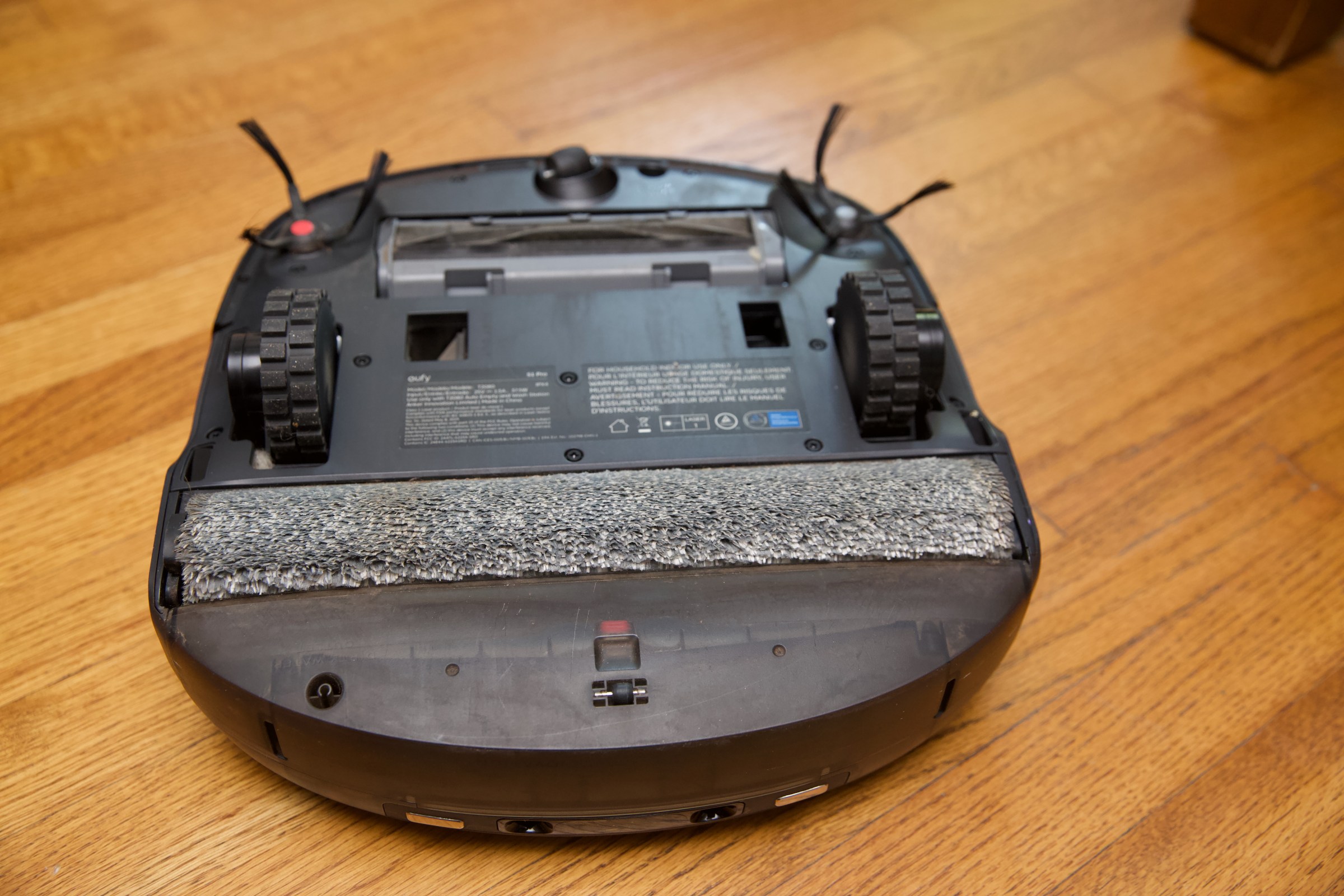 The Eufy performed very well in my mopping tests, eradicating dried stains with its 2.2 pounds of downward pressure. Thanks to an onboard water reservoir, it didn’t have to head home to fill up as frequently as some bots do. It also has heated mop drying to help prevent the base from getting stinky — a first in this price range.
