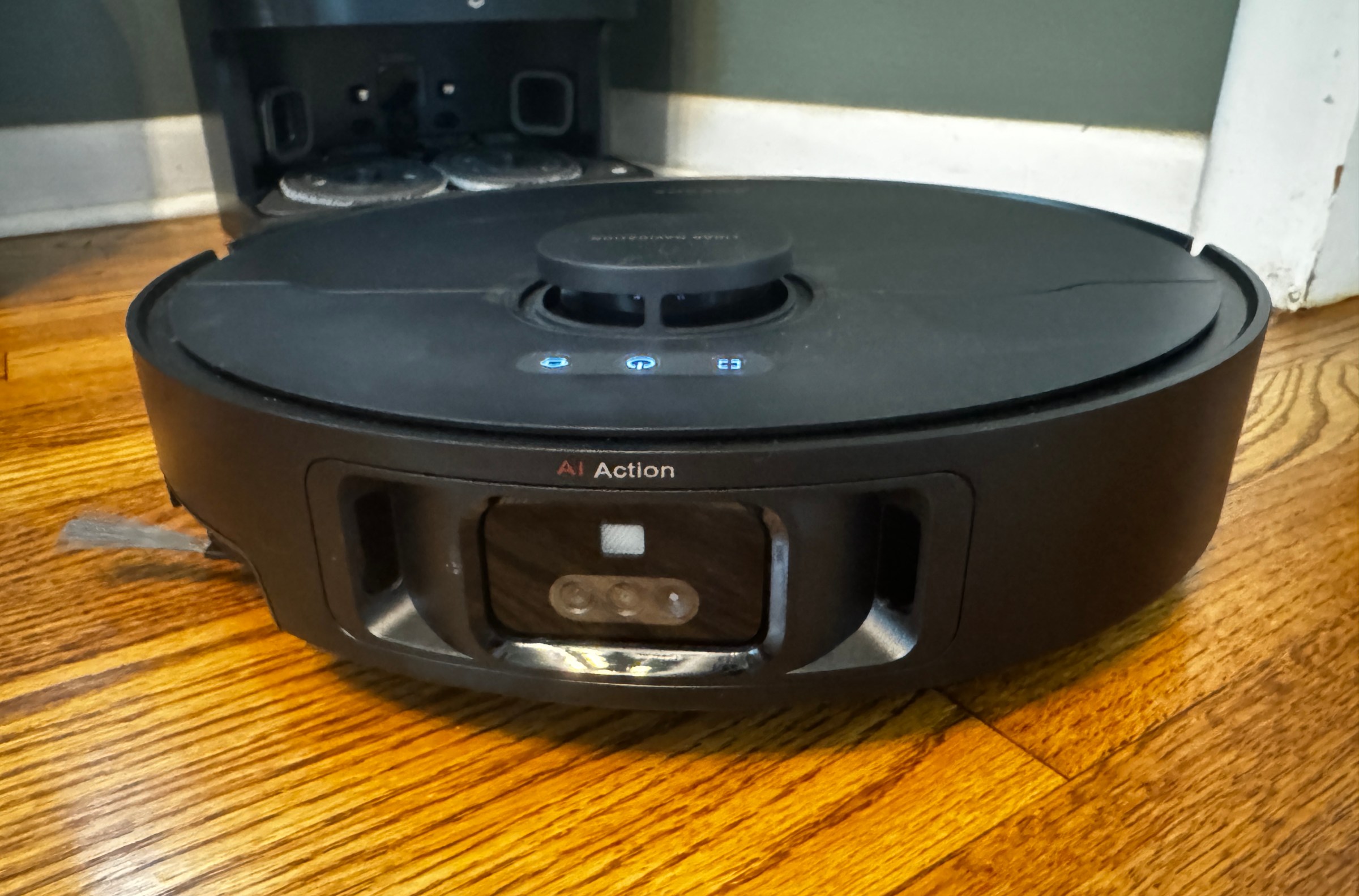 The X8 uses lidar and a 3D camera for mapping; the latter also facilitates its obstacle detection, which is very good — it easily navigated fake dog turds and cables while sucking up oatmeal and Cheerios. It’s much better at navigating than the X2, but it did occasionally get itself trapped, including when it went under a chair that was too low for it to get out from. The top of the robot was fairly scratched up after just one week of use. (Worth noting, Ecovacs suffered a hack last year in which bad actors could access the camera and microphone on the X2)