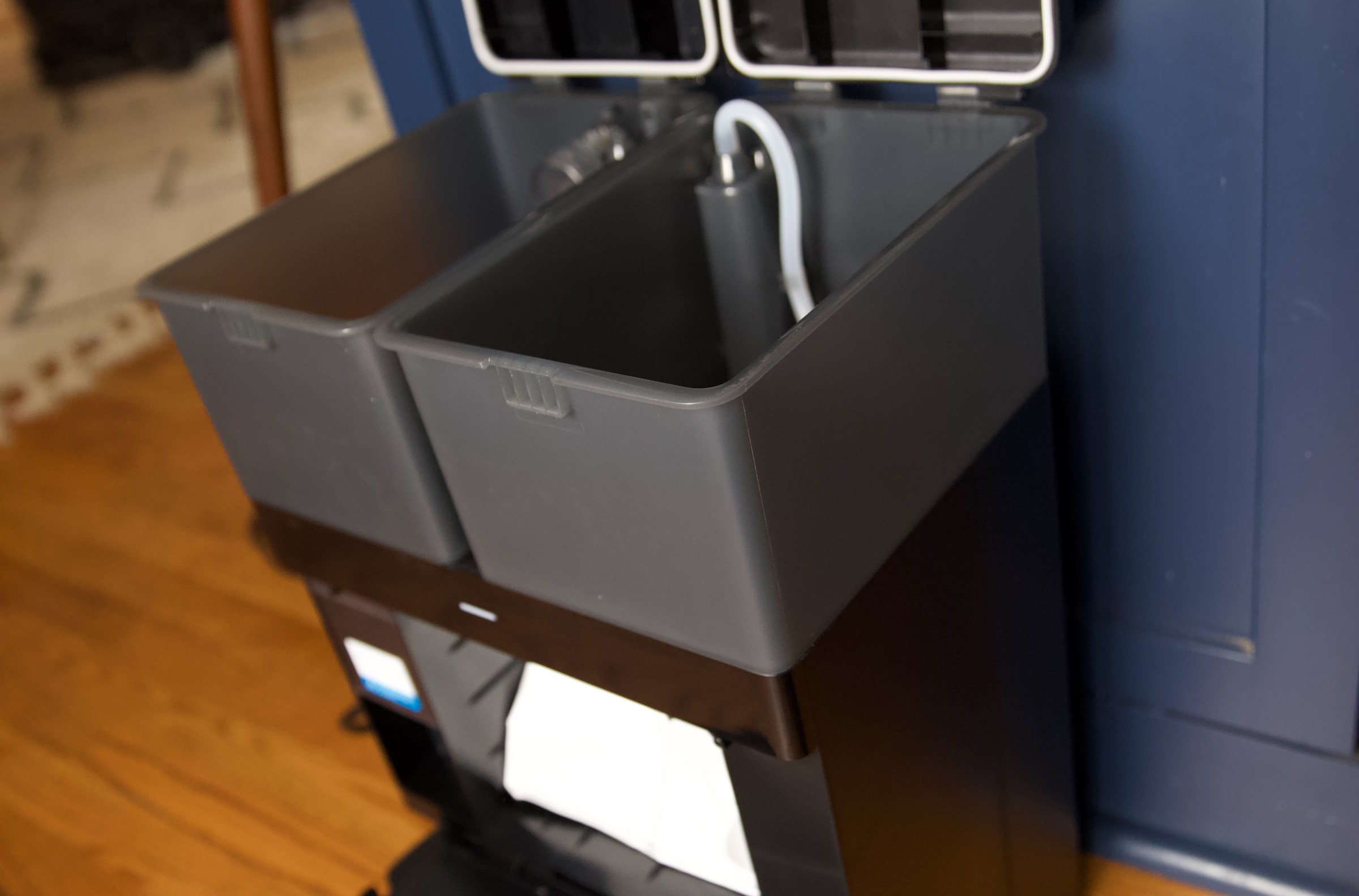 The X8’s multifunction dock is much smaller than the X2’s and has some nice rose gold accents. Its water tanks are integrated into the dock and supereasy to remove to empty and refill — there’s no lid to mess with, you just lift up and go. The X8 doesn’t self-clean its washboard, however, and while it’s removable to make it easier to clean, I still had to get on my knees and scrub its base station after just a week of use.