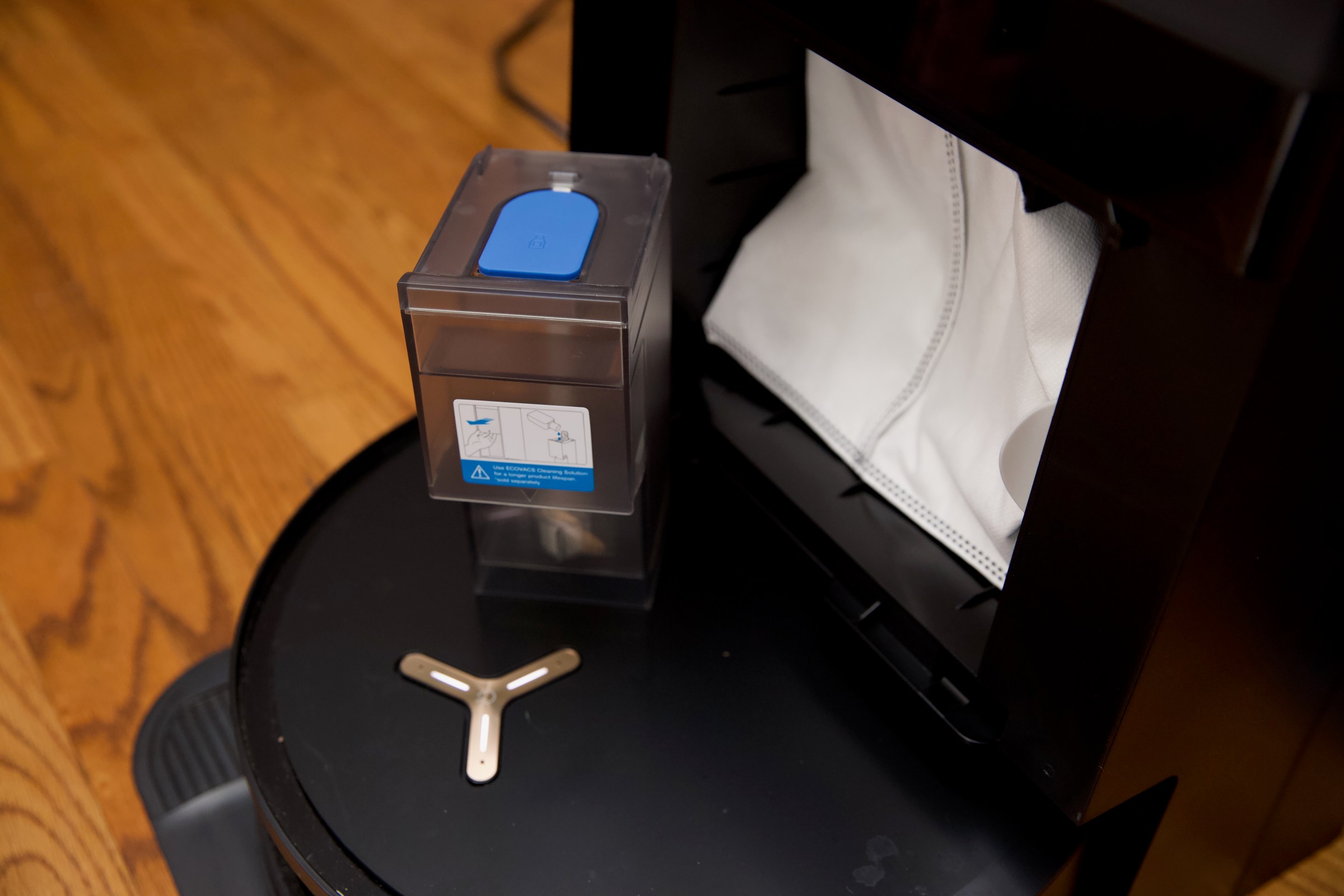 The self-cleaning brush system kept the bot from smearing any spills it encountered. As it’s cleaning, a scraper squeegees off the dirty water and 16 nozzles spray it with fresh water and solution, if you use it. As with most high-end mopping bots, the dock has the option of auto-dispensing cleaning solution.