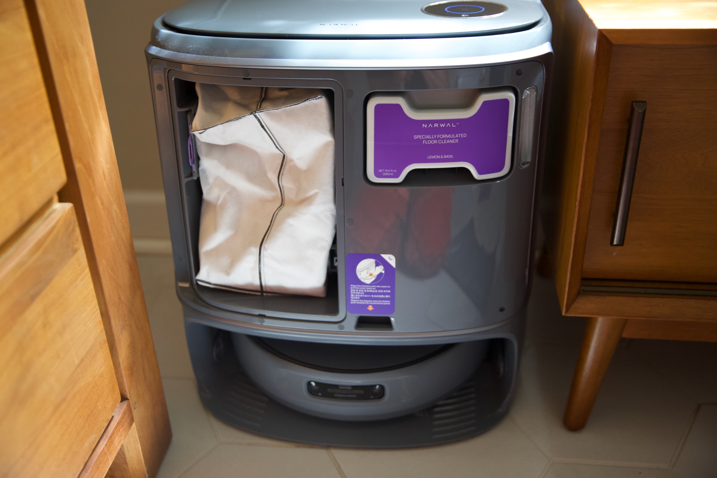The fluffy sidebrush feels more of a novelty than a necessity and doesn’t really seem to do much. Also, at this price, it would be nice if the Narwal offered a self-cleaning washboard. However, its washboard is removable, which makes it easier to clean manually.