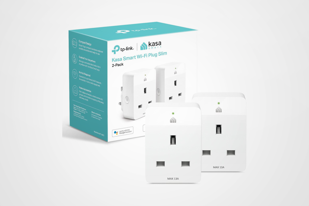 This hubless pair of smart plugs from TP-Link uses 2.4GHz Wi-Fi to carry out their duties. Controllable via an app or Alexa/Google Assistant, you can use them to remotely control multiple devices without having to lift a finger.