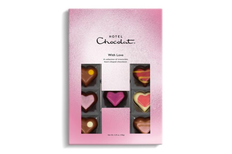 The With Love H-box offers 14 luxurious Valentine’s chocolates, perfect for treating yourself or a loved one. It includes indulgent flavours like silky Dark Gianduja, zesty Lemon Curd, and creamy Vanilla hearts. Enjoy classic favourites such as Salted Caramel and Strawberry Mousse or explore nutty options like Pecan and Pistachio hearts. For those craving a tipple, the Amaretto chocolate delivers a delightful kick. With white, dark, and milk varieties, there’s something to satisfy every chocolate lover’s taste.