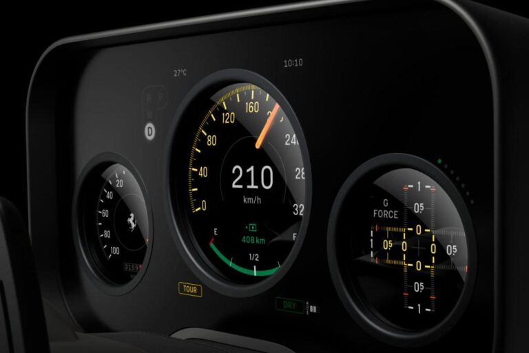 Graphics lean heavily on historic Ferrari instruments and watch dials, designed to reduce cognitive load and keep information readable at a glance. Will it run Apple’s CarPlay Ultra? Perhaps not…