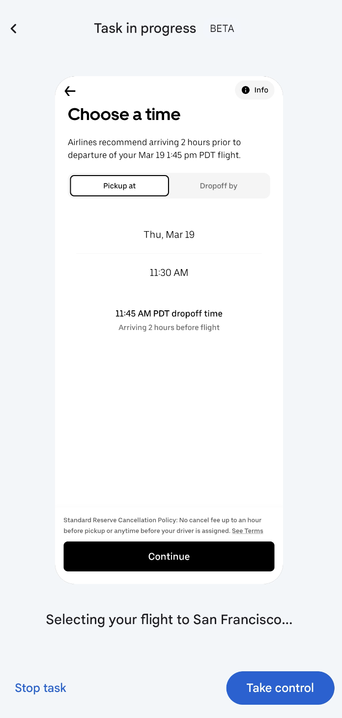 First off: Gemini is much slower than you, or me, or most anyone at using their phone. If you need to order an Uber right this second, you’re still the best person for the job. Before you write it off, though, remember that task automation is designed to run in the background while you do other things on your phone. Even better, it keeps working while you’re not looking at your phone, so you can do things like check that your passport is in your bag for the 10th time.