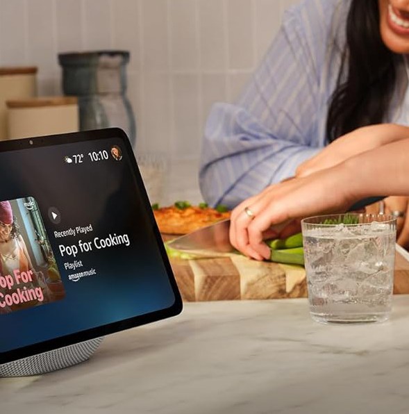 Both smart displays feature a more refined design with 3D knit fabric, slimmer bezels, and vivid color. They come with a 13-megapixel camera that can adjust screen content based on who is looking at it and your location, along with an expanded display area and new front-facing stereo speakers. Both speakers also support Alexa Plus and can serve as built-in smart home hubs with support for Zigbee, Matter, and Thread. In addition, they’ll provide personalized health insights through Amazon’s new partnership with Oura, with support for more devices from Withings and Wyze coming soon.