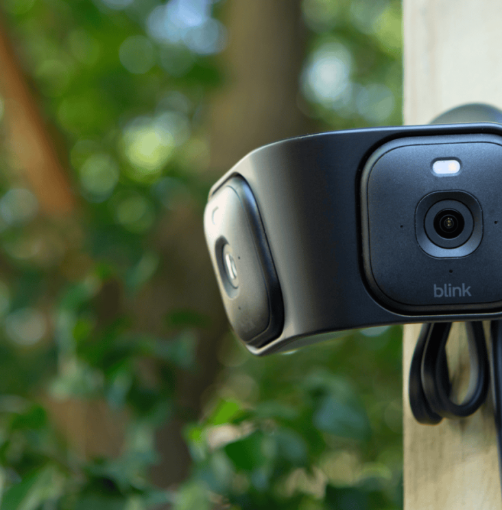 The new Blink Arc combines two Blink cameras to capture different perspectives of the same space, merging them into a single feed with a 180-degree field of view.