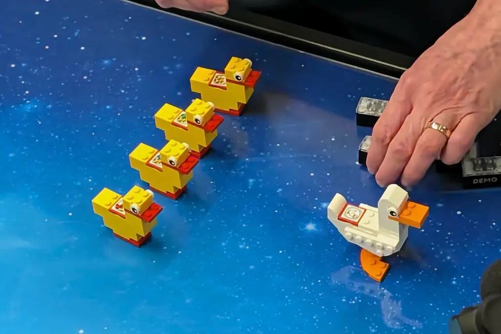 At CES, Lego had several demo tables set up. Some showed the upcoming Star Wars sets. Others were deliberately simpler, proof-of-concept builds meant to show what could be done. A duck. A police car. A dinosaur. Even a small music box.