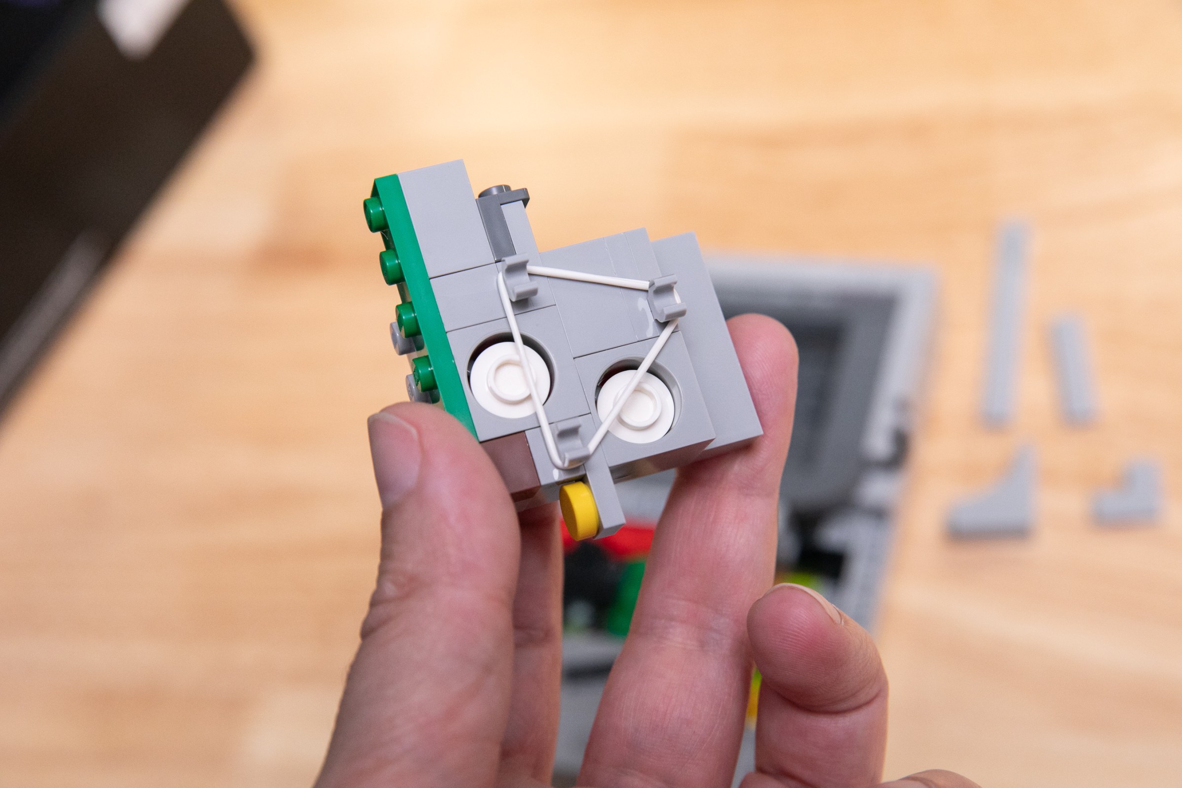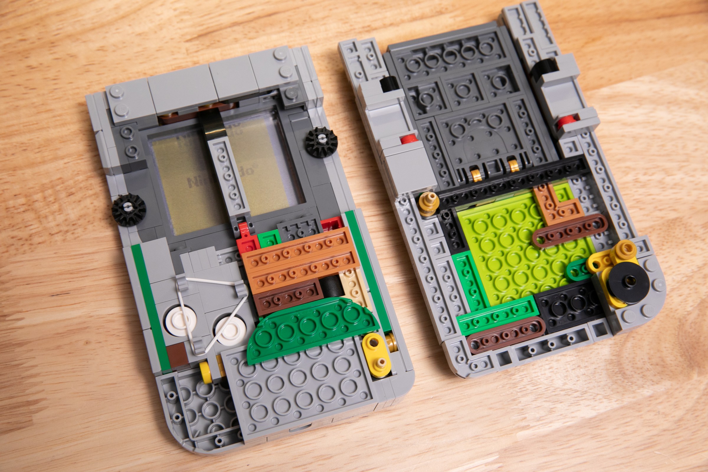 You can get a better sense in my video, but after a certain point the whole set is built out of modular parts. You create a set of springy face buttons that slide into place, a D-pad that drops in, a screen that needs attaching. It contributes to the illusion you’re building electronics instead of just piling bricks together. And there are details you’ll only appreciate if you’ve seen inside — like how the springy Start and Select buttons are actually Lego car tires.