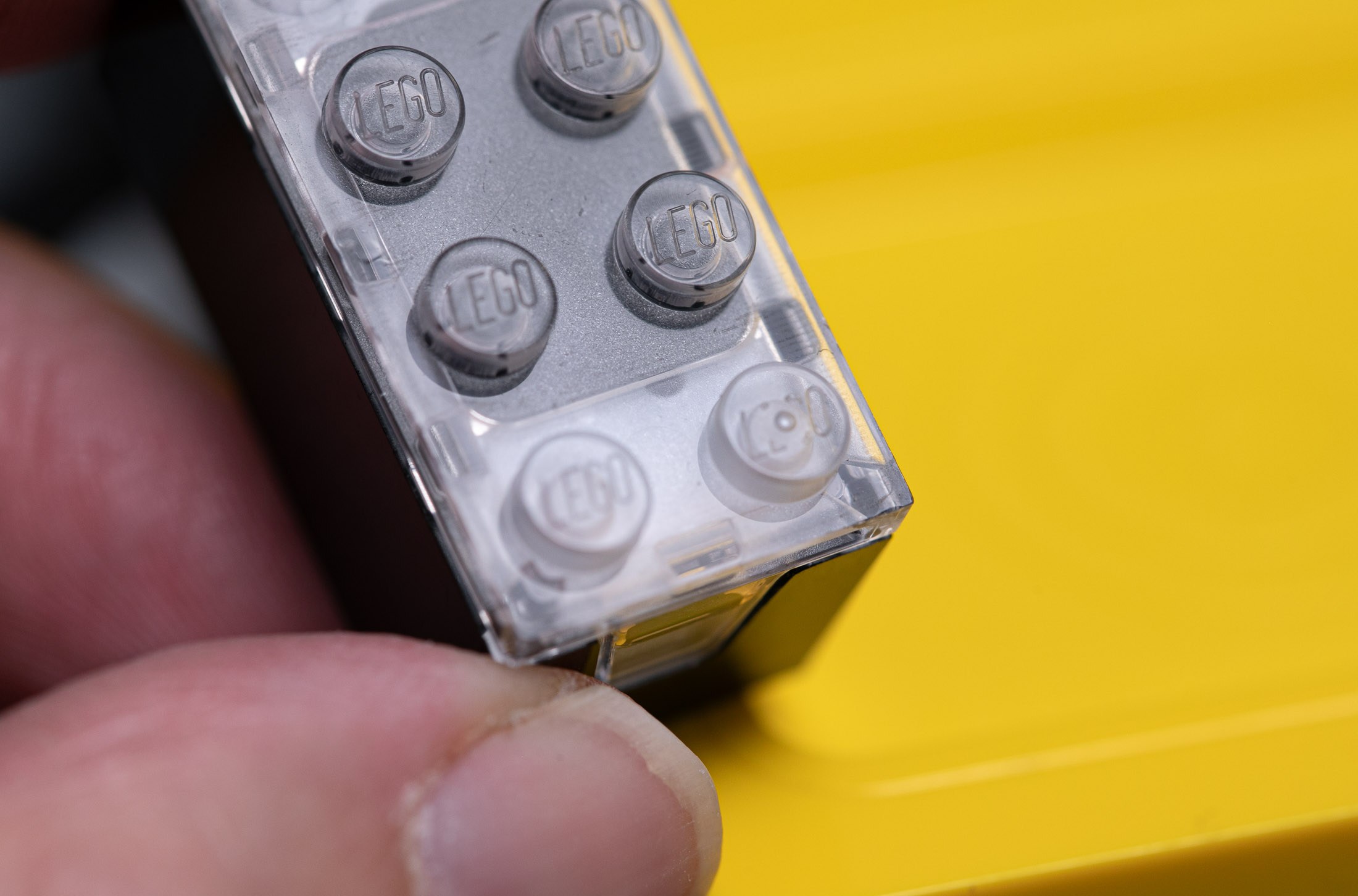 The Lego Smart Brick is a tiny computer in the shape of a 2×4 Lego brick. It offers RGB light; real-time synthesized sound; a wirelessly rechargeable battery; Bluetooth mesh networking to communicate with other bricks; sensors including motion, orientation, color, ambient light, and proximity; a microphone to detect sound; and most importantly, an NFC reader so it can execute tiny programs just by attaching the brick to a Lego set.