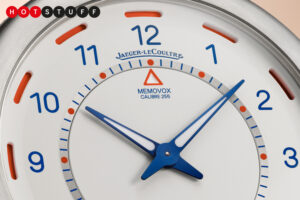 The clock features a brand new in-house movement, Calibre 256, wound by hand. Its most impressive trick is a 12-day power reserve – a huge relief for travellers who don’t want to fuss over rewinding.