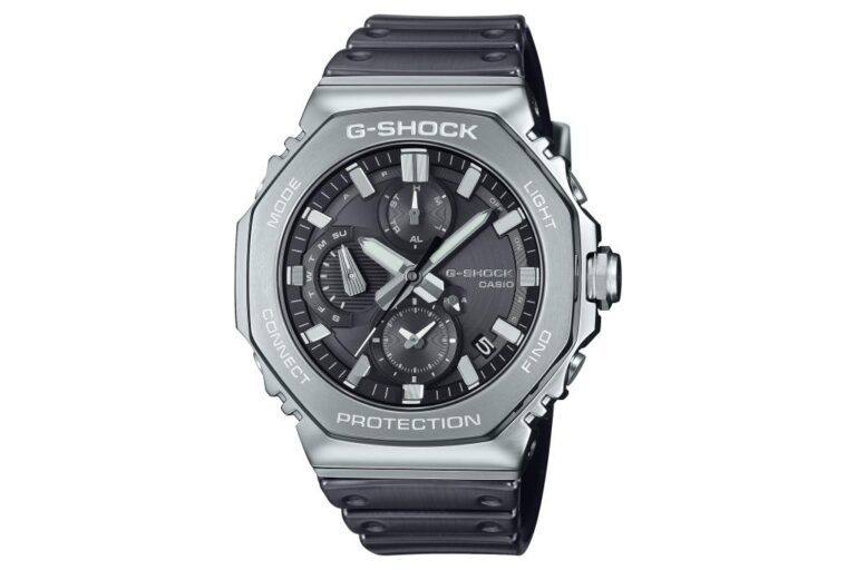 If you want the metal look without going all-in, the GM-2100 series starts at £199 before the discount (now £159.20) and keeps things light with a resin band and a metal-clad bezel. It’s the familiar octagonal shape, the vapour-deposited metallic dial, and the slightly dressier feel that made this series so popular. Think of it as a more everyday version – still tough, still stylish, just a bit easier on the wallet.