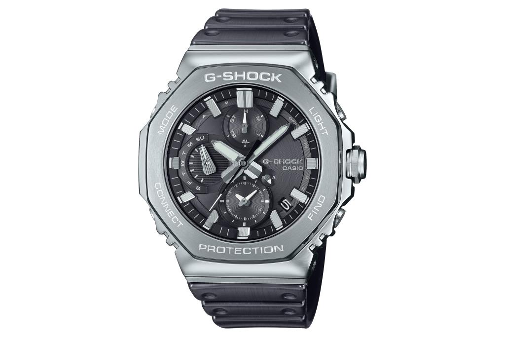 Let’s start at the top. The Full Metal GMC-B2100 range sits at £690 before the code (now £552), and it looks every bit the flagship. It nods to the original 1983 G-Shock but updates everything you actually care about – the forged stainless-steel bezel, the mix of hairline and mirror finishing, the slim module, the soft silicone band wrapped in a protective urethane layer.