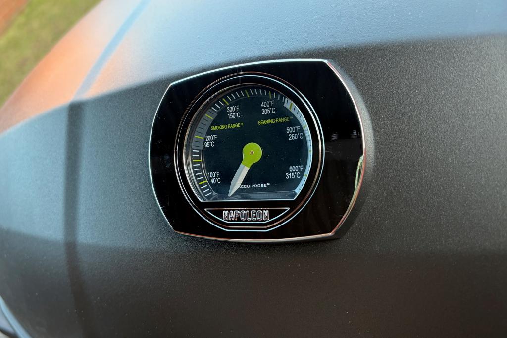 I was impressed with how evenly the Napoleon’s porcelain-coated cast-iron cooking grids heated up – none of my food got stuck to them. This barbecue cooked meat wonderfully, leaving nicely defined sear marks.