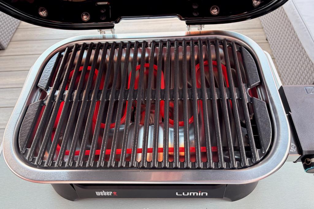 On the other side of the ring, the Weber Lumin Compact costs $399/ £389, also has 2200W of power, has a smaller cooking areas of 1166cm2, measures a more compact 59x41x28cm and weighs significantly less at 12kg. Weber’s add-ons
