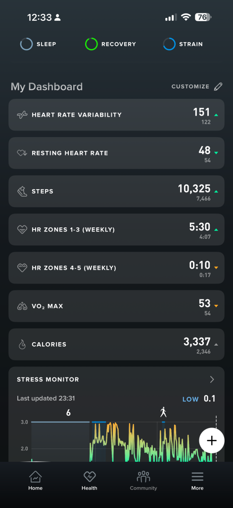 There’s a decent bit of coaching involved too. The feature isn’t just telling you off for your bad habits – it actually tries to help you get better. Personalised recommendations nudge you towards healthier habits. For example, I need to be more consistent with my bedtimes to improve my Whoop Age, and getting some extra steps in each day will knock me into a lower age.