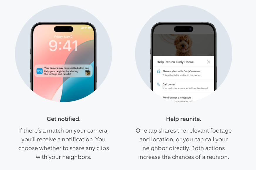 This week, Ring, an Amazon-owned smart security company, announced Search Party, a new feature to help find lost dogs. When someone posts a picture of a lost dog on Ring’s Neighbors app, they will be able to initiate a Search Party. Ring then uses AI to scan footage from nearby outdoor Ring cameras and doorbells for the lost pet. If it’s detected via someone else’s device, that camera’s owner will receive a notification and can choose to share the video with the pet owner.