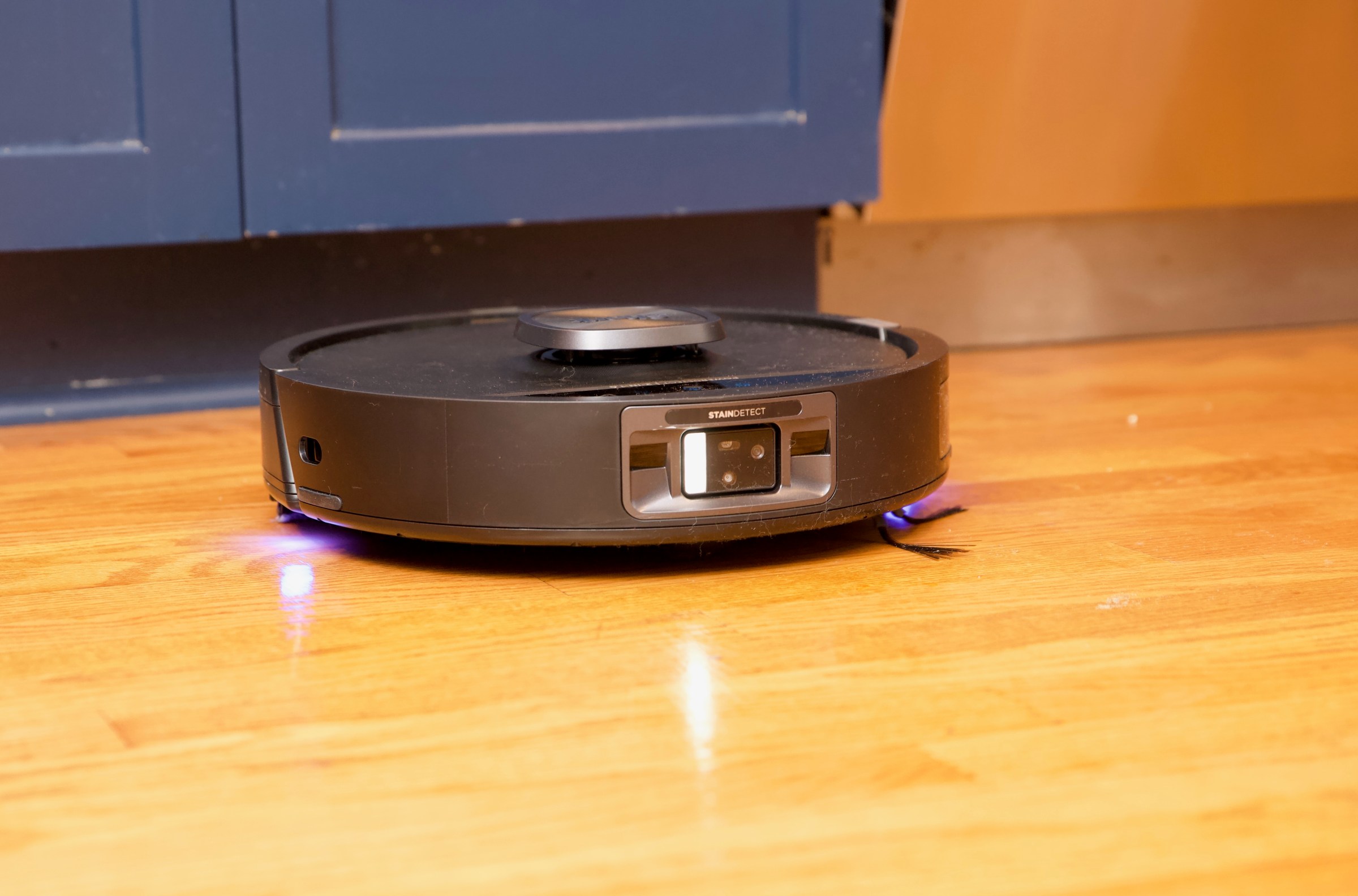 I like how it puts on a little light show to give you a visual indicator of what the robot is doing. Purple shows its detected dirt and will boost suction, blue indicates a stain, and red is an error message. My favorite useless feature, however, is how the robot does a little twerk every time it exits the base; it’s frankly adorable.