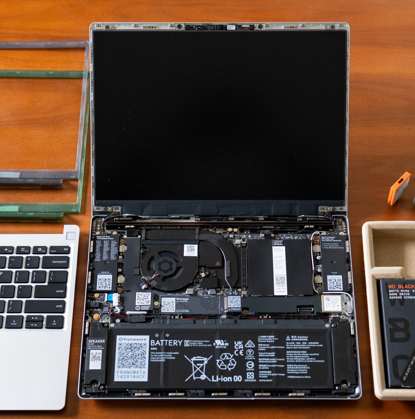 But that’s part of what’s so cool about a Framework: a new model means a new chip you can even put into the old model, if you want an upgrade and don’t mind opening up the chassis yourself. It’s actually much easier to do than you may fear, as Framework designs its laptops to give you full access to everything inside with just a simple screwdriver; including its mainboard, storage, RAM, battery, and some fun see-through bezels for a touch of customization.