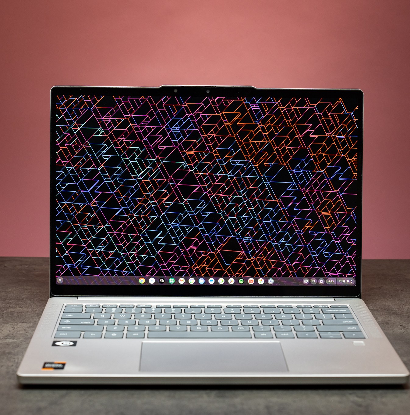 Lenovo’s Chromebook Plus 14 is the best model we’ve tested so far in 2025 because of its impressive tech specs and long software support. It has a 14-inch FHD (1920 x 1200) 60Hz OLED touchscreen display that has excellent color and contrast, as well as 16GB of RAM, and a 256GB SSD. Its 8-core MediaTek Kompanio Ultra 910 processor was powerful enough that we could jump between Chrome tabs and Android apps spread across two desktops while uploading documents to NotebookLM to generate audio overviews without any problems.