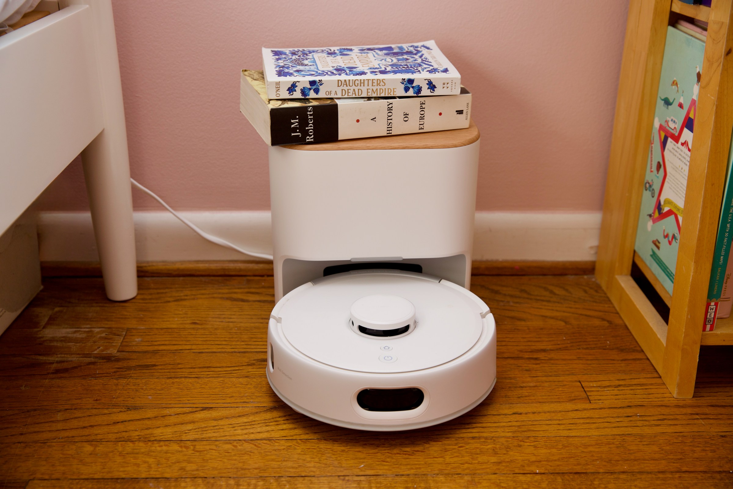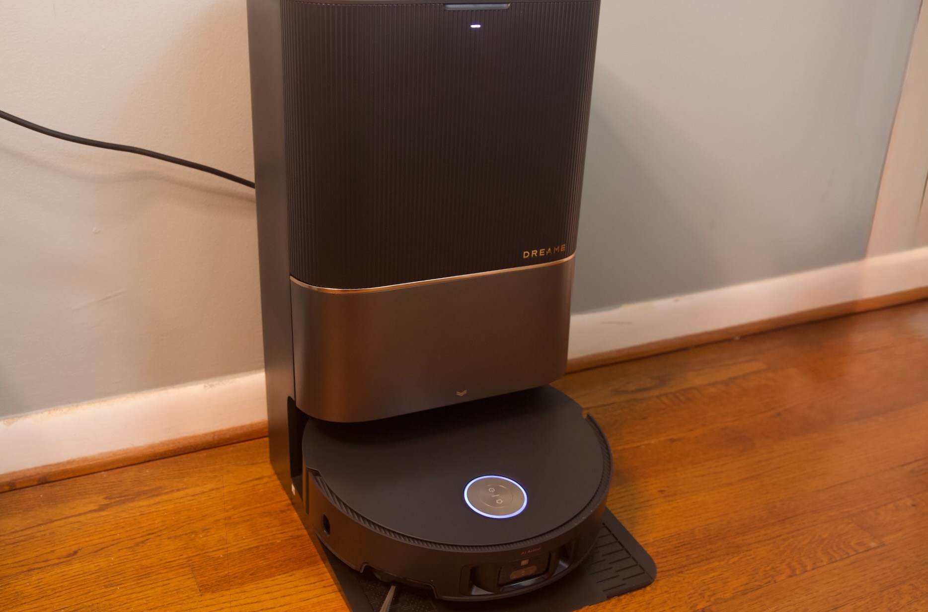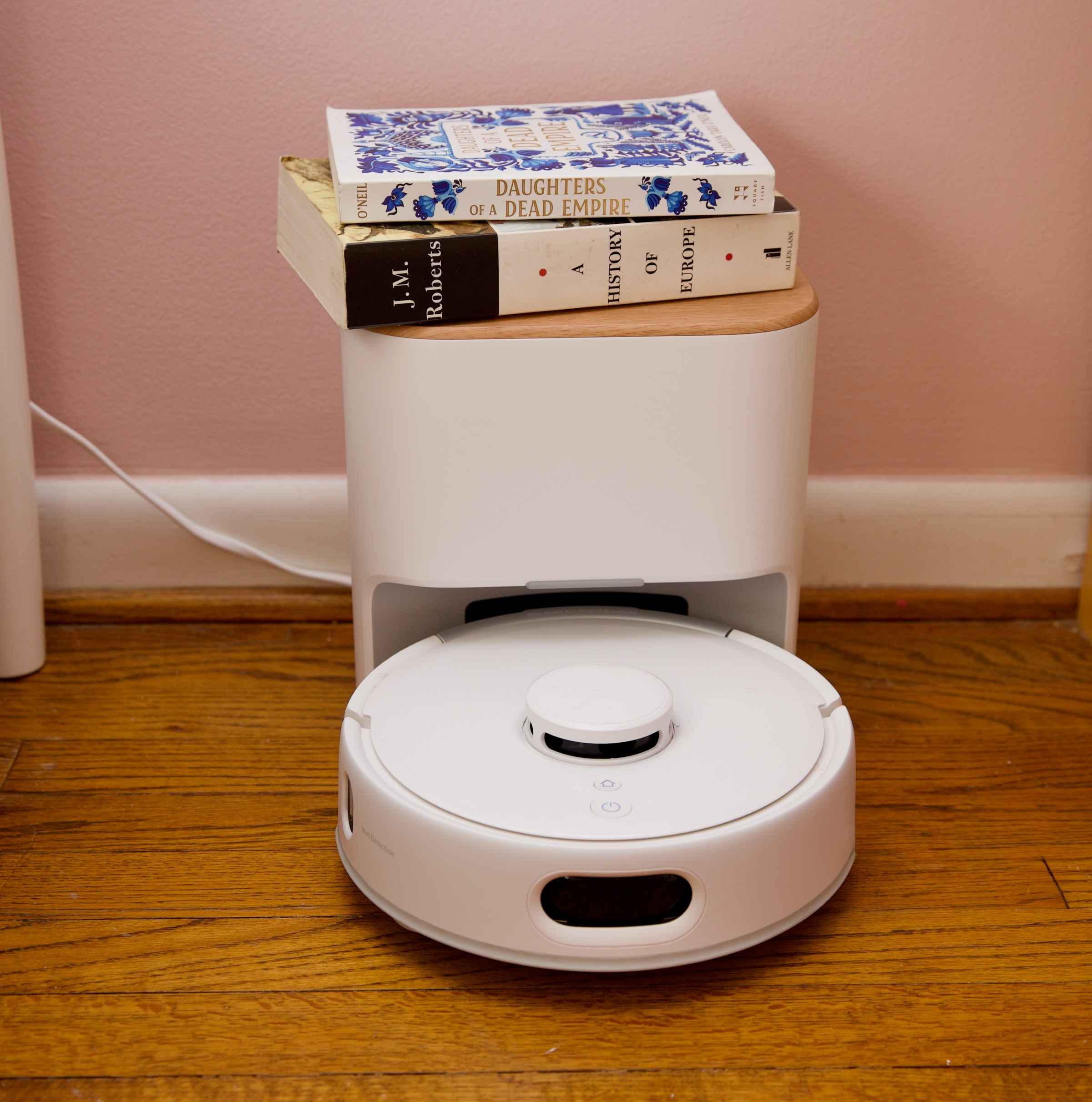 There’s no AI-powered obstacle avoidance, and the mopping function is more like swiffering with a baby wipe than mopping, but for a small home with lots of carpet, or for upstairs bedrooms, it’s a great option. It’s also very quiet and surprisingly quick, and its charging dock has an attractive wooden top that fits into these rooms better than most.