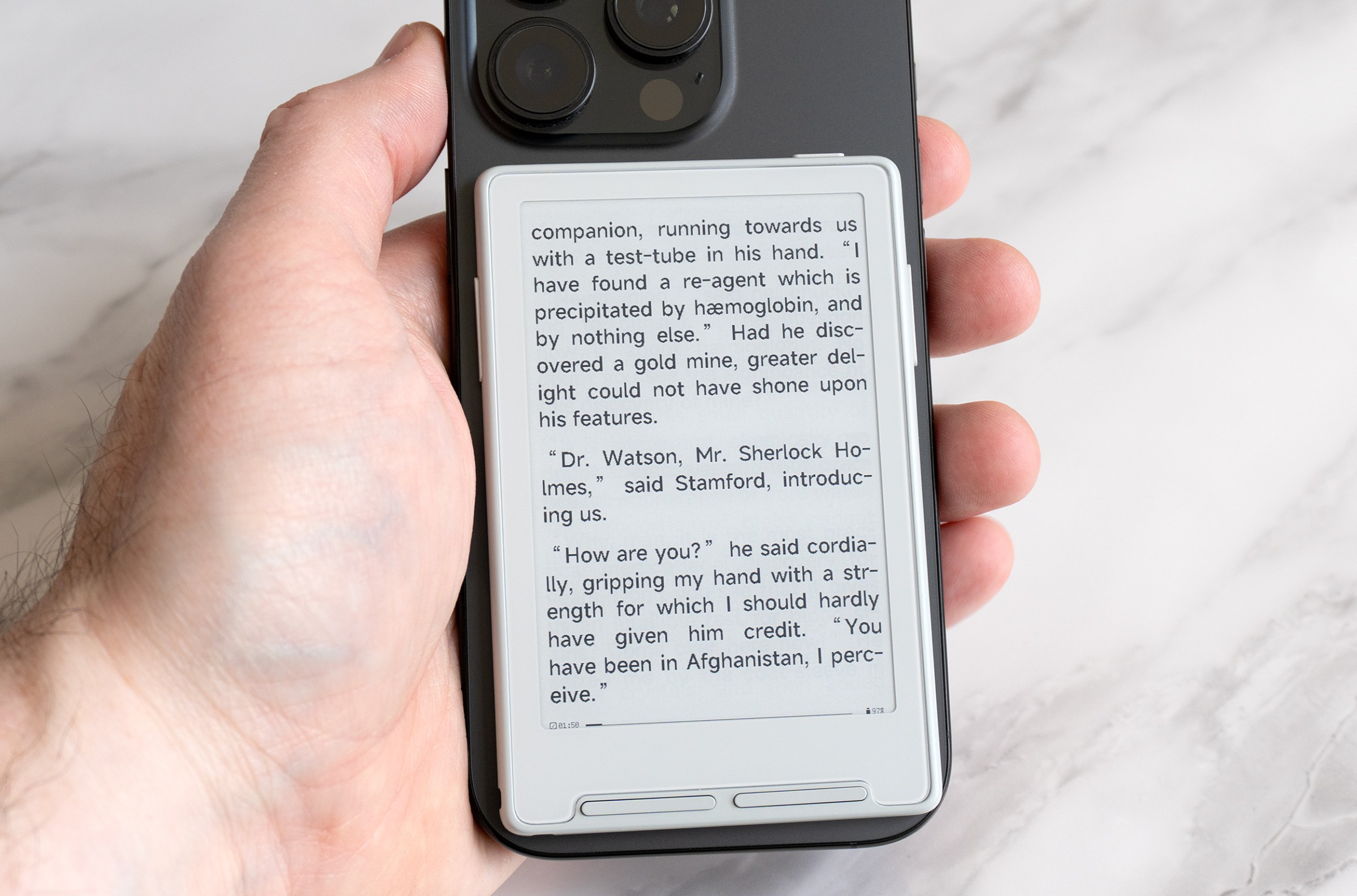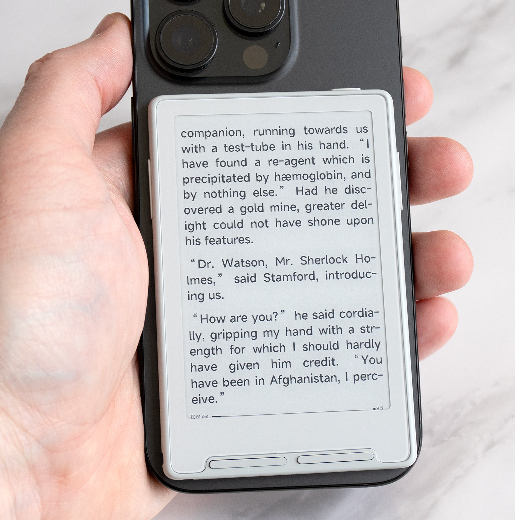 When the X4 first popped up last December, it wasn’t just its size that caught our attention. Xteink promoted the X4 with images of it stuck to the back of a smartphone like a MagSafe battery, seemingly promising an e-reader that went everywhere your phone did and a more versatile alternative to e-reader cases. But the odd positioning of the magnets on the back of the X4 and its size prevented it from properly piggybacking on my iPhone 16 Pro without resorting to applying adhesive metal rings and having it awkwardly hang off the bottom.