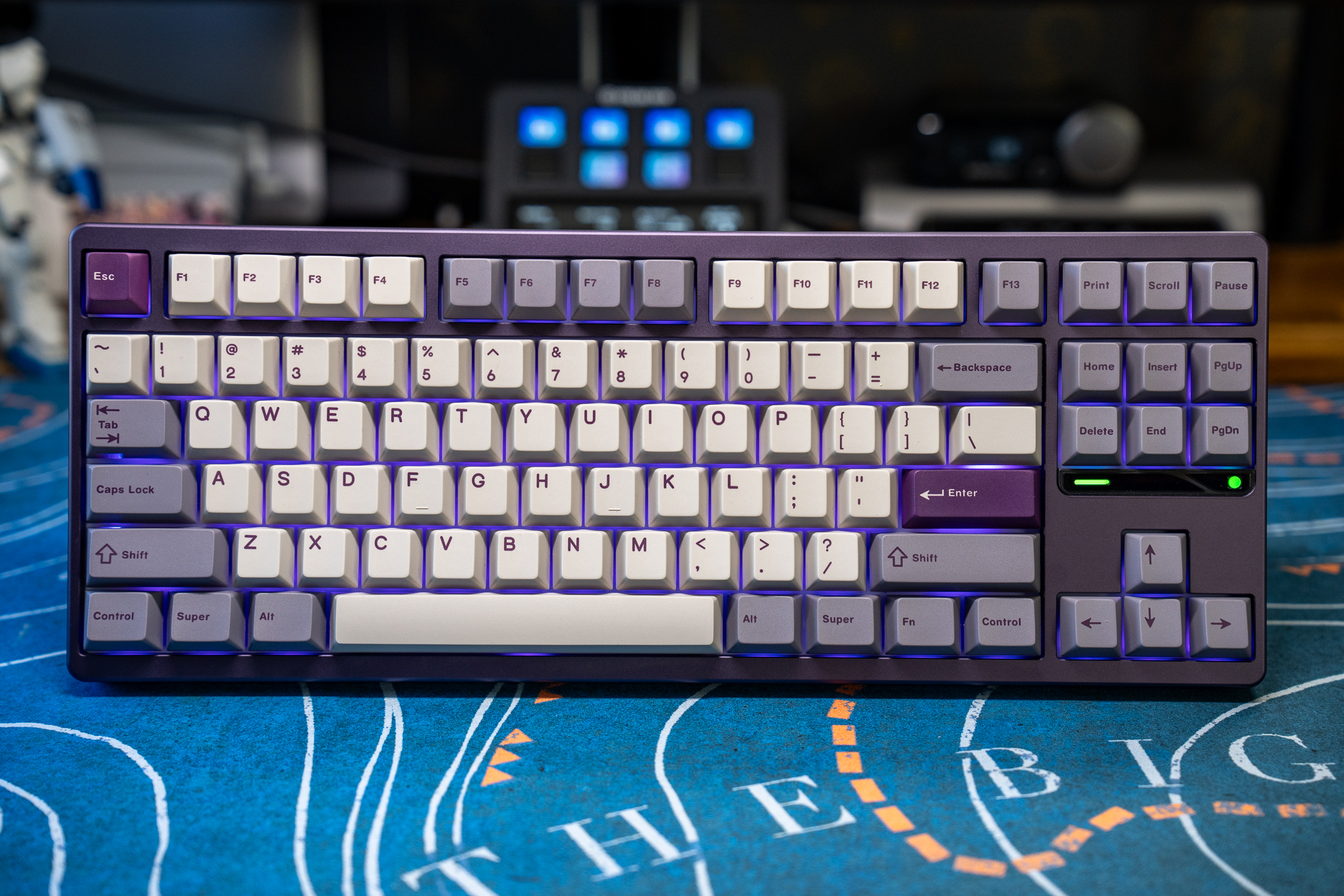Connectivity: USB, BT 5.0, 2.4GHz / Keycaps: Double-shot PBT / Hot-swappable: Yes (MX-compatible) / Available sizes: 75 percent / Available layouts: ANSI / Switch options: Aster low profile (linear) / Case colors: Beige, silver, white, black, blue, lavender / Remapping software: Proprietary / Extras: LCD screen / Battery size: 3,600mAh